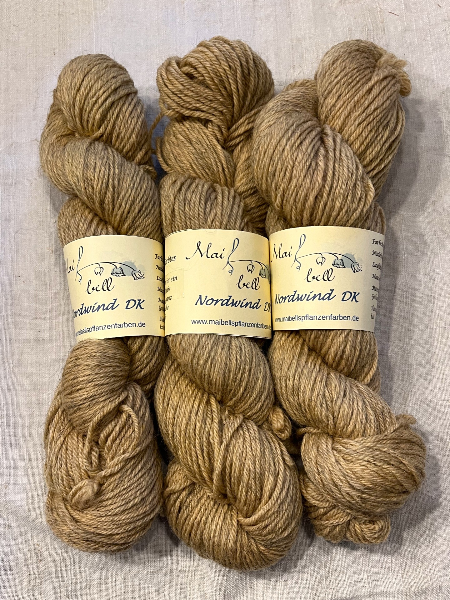Das weiche Garn ist eine Mischung aus 80 % weißer Corriedale-Wolle und 20 % hellgrauer Gotlandwolle. Gotlandwolle ist von Natur aus grau, was in Kombination mit dem höheren Anteil an Corriedalewolle ein hellgraues Garn ergibt, das ich für dich mit Pflanzen in herrlich natürliche Farbtöne verwandelt habe.