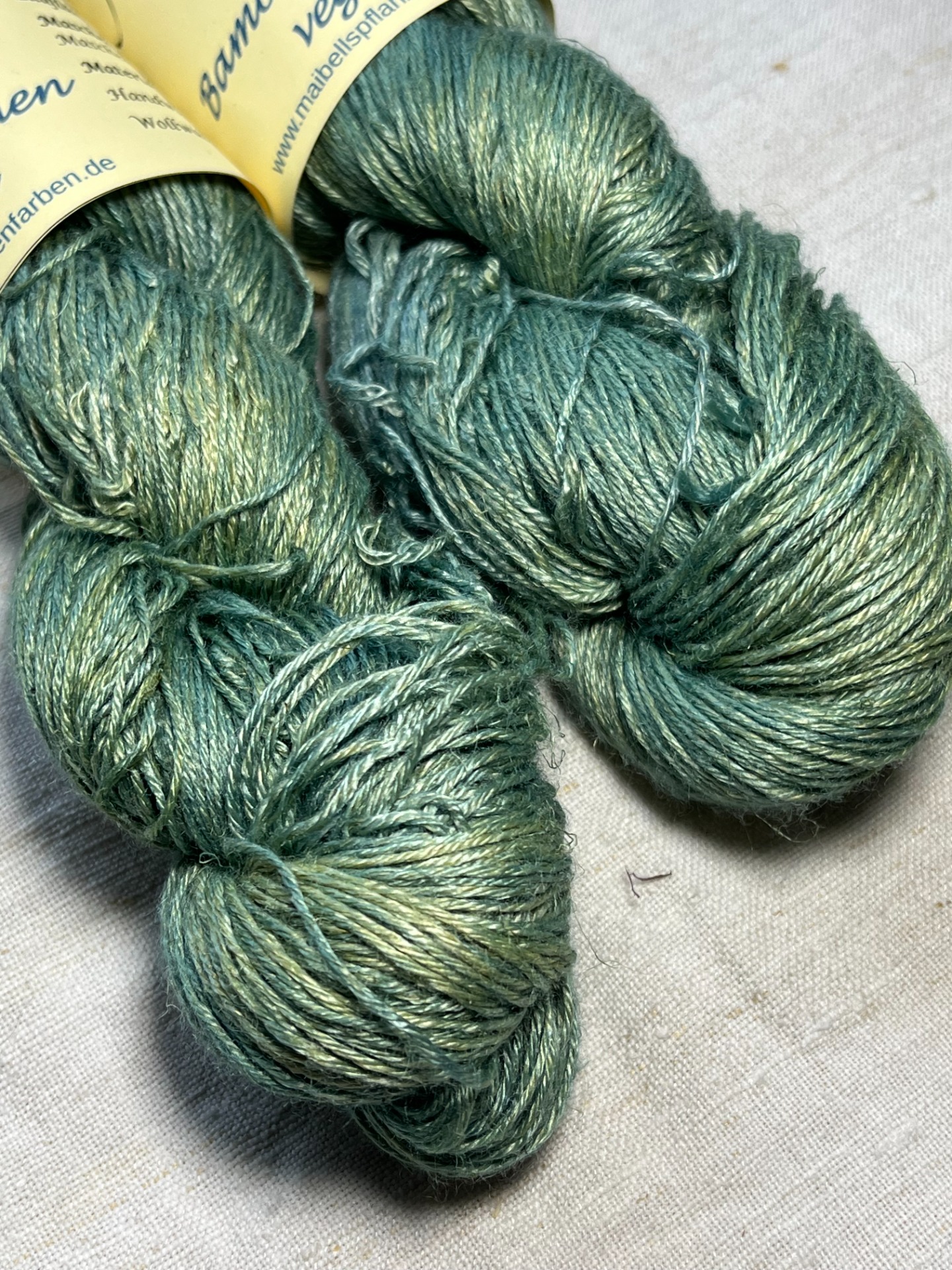 100 g Strang - gefärbt mit Möhrenkraut und Indigo, changierend wie die Farben der Meerjungfrau