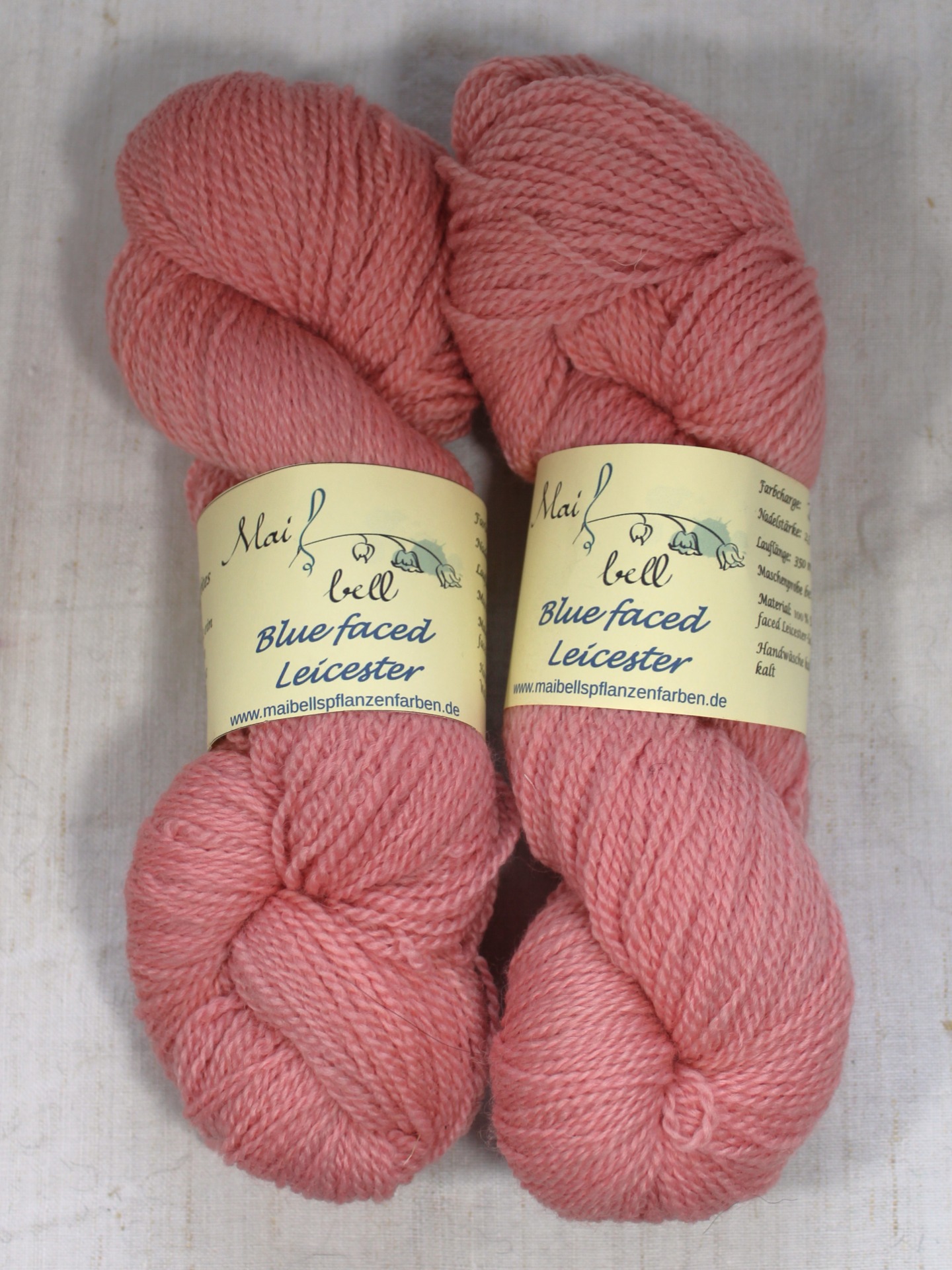 100 g Strang, 100 % Schurwolle vom Blue faced Leicester Schaf gefärbt mit Sappanholz