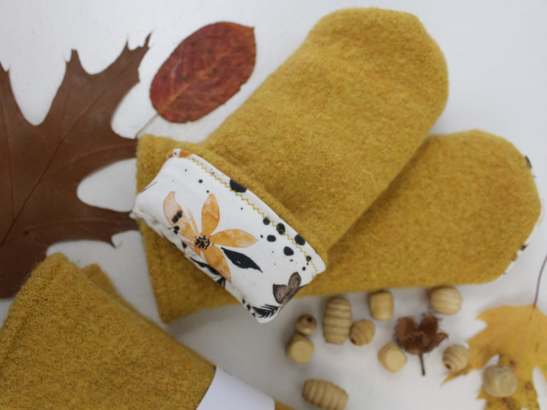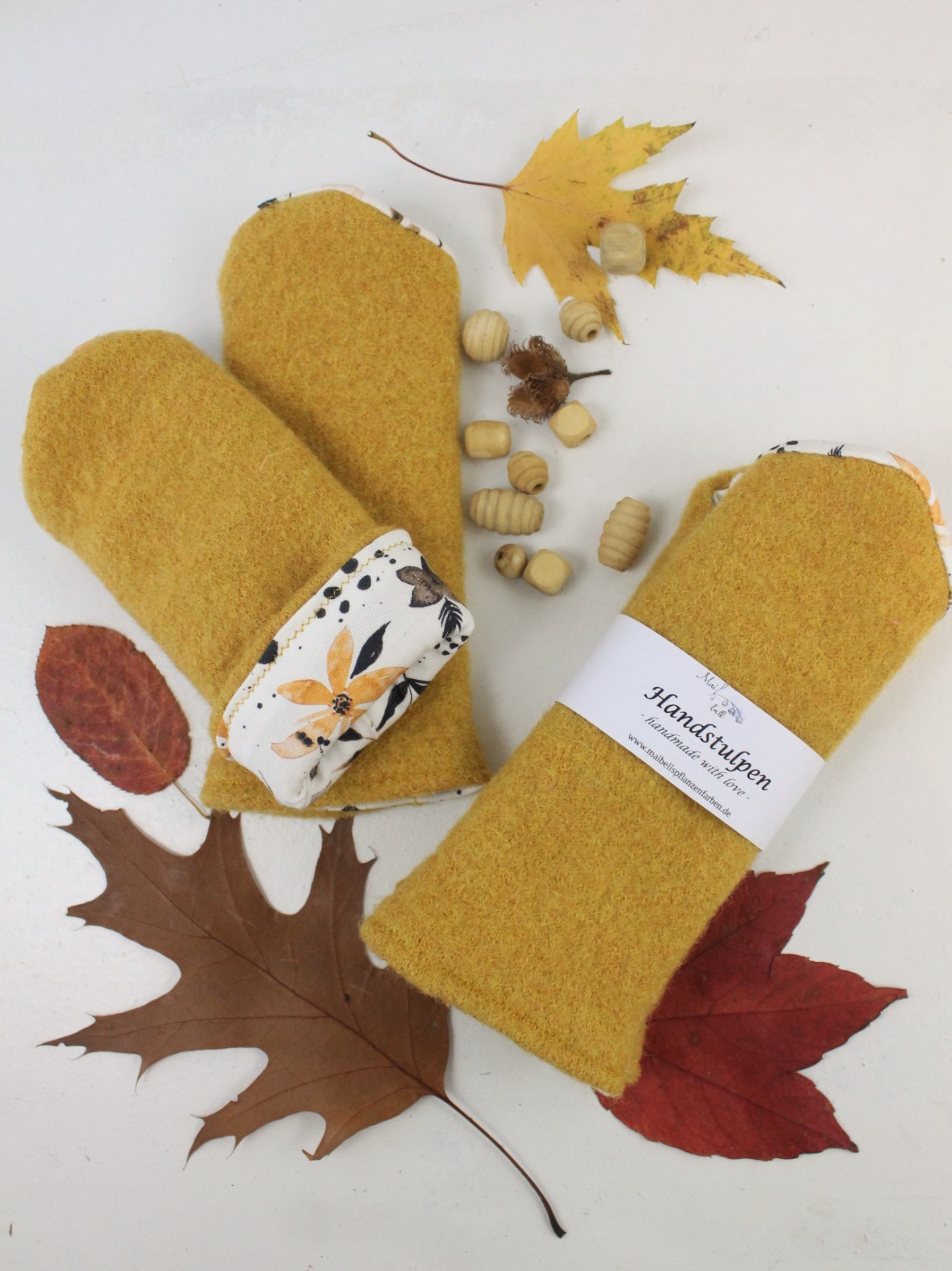 Handstulpen aus pflanzengefärbtem Wollwalk