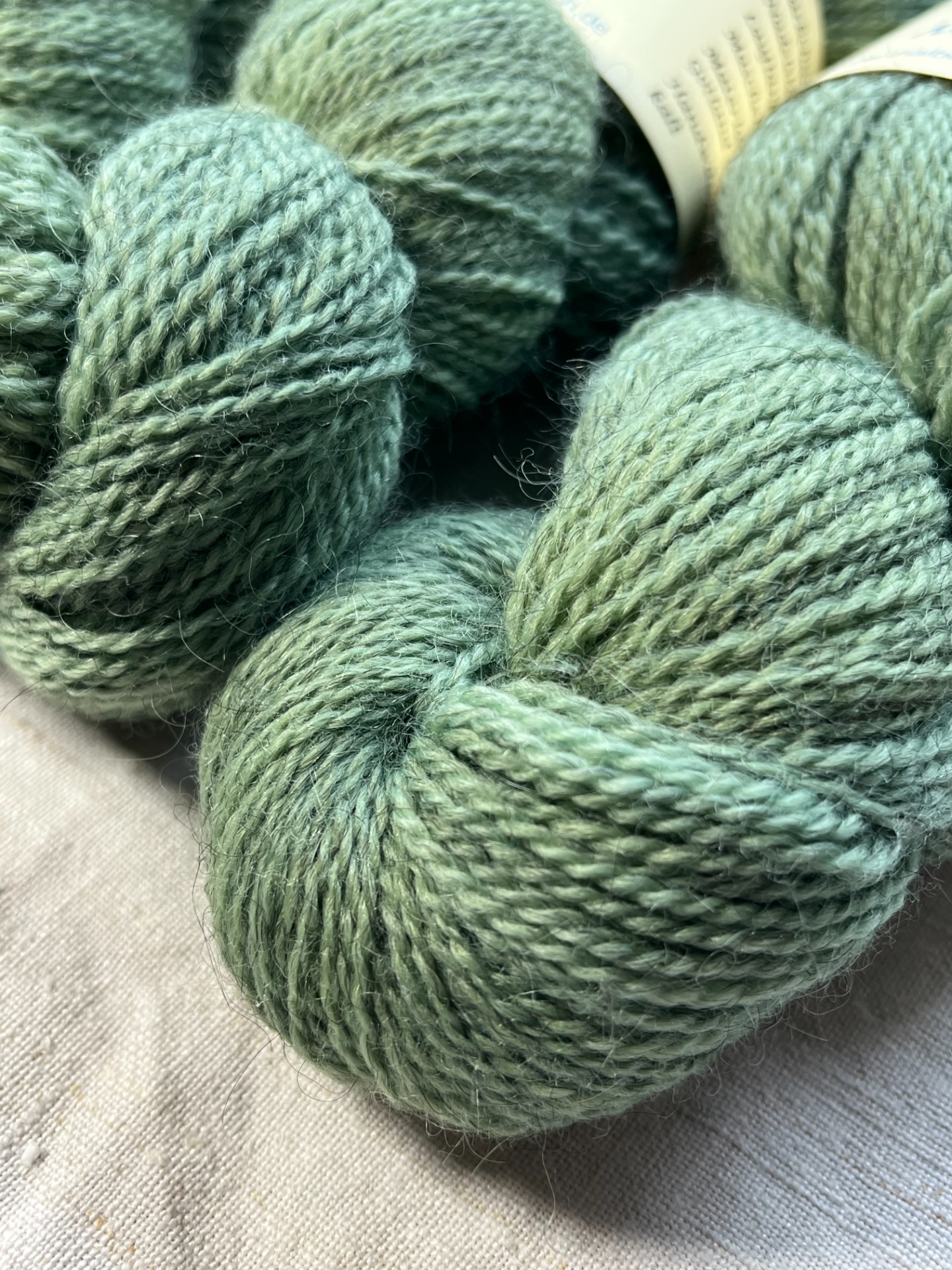 100 g Strang, vierfädiges Garn, gefärbt mit Möhrenkraut und Indigo
