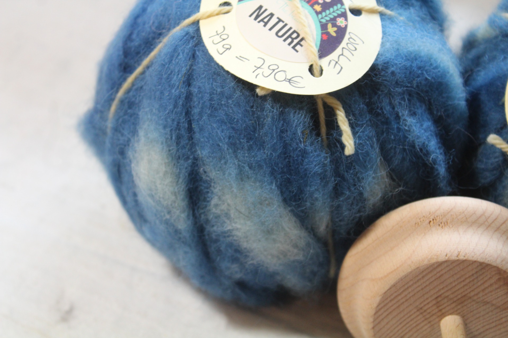 Kardenband- zum Knäuel gewickelt - unregelmäßig gefärbt mit Indigo