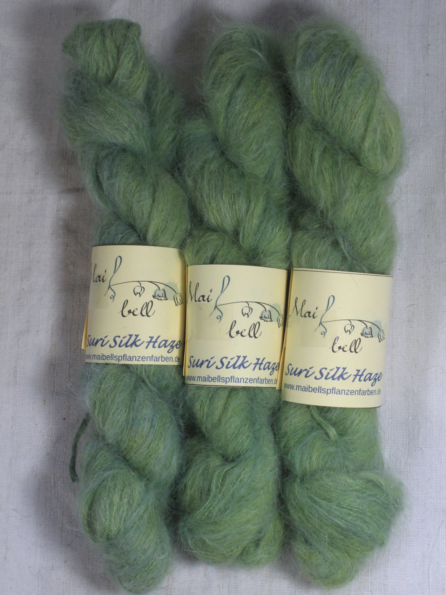 Zusammensetzung: 75 % Baby Suri Alpaca (Peru), 25 % Maulbeerseide, 2-fädig versponnen